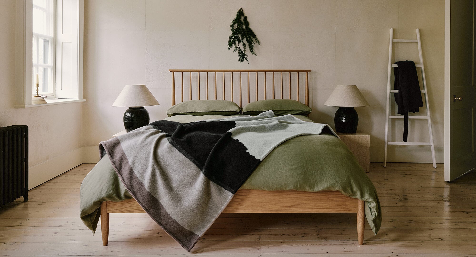 Für unsere Scottish Cashmere Home-Kollektion hat Hayley das Artwork für zwei luxuriöse Kaschmirdecken entworfen, inspiriert von der Landschaft, die ihr Studio im Haining in Selkirk umgibt.