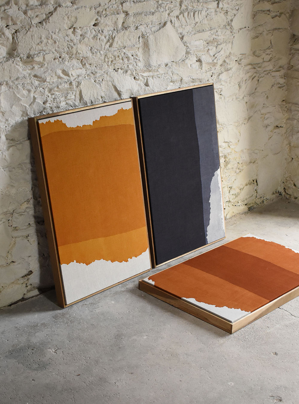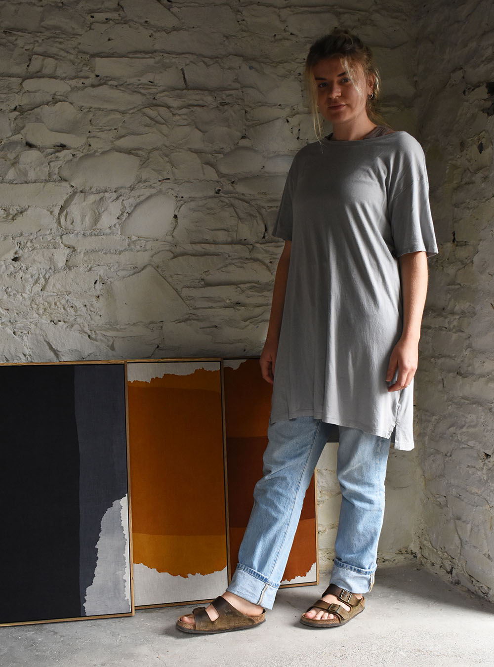 Inspiriert von traditionellen Handwerkstechniken schafft Hayley abstrakte Landschaften, die in der schottischen Umgebung verankert sind und dennoch Zeit und Ort überschreiten.
