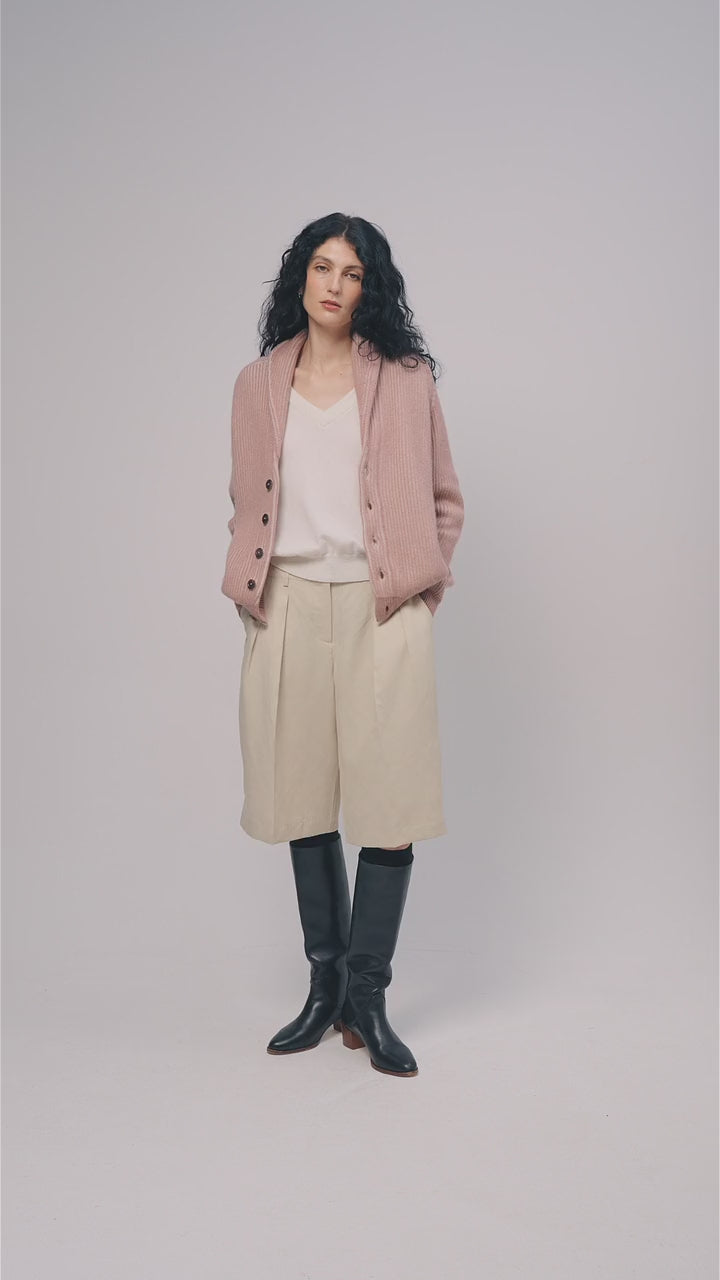 Inspiriert von unserem beliebten Yacht-Cardigan, wurde dieser Schalkragen-Klassiker modern interpretiert. Der schwere Andrew-Cardigan ist aus einer hochwertigen Kaschmir-Baumwoll-Mischung gefertigt und besticht durch aktualisierte Proportionen für eine zeitgemäße Silhouette – mit einer etwas kürzeren Länge und einer körperbetonteren, eleganteren Passform. Das charakteristische Rippenmuster im charakteristischen Cardigan-Stil sorgt für einen einzigartigen zweifarbigen Rippeneffekt.