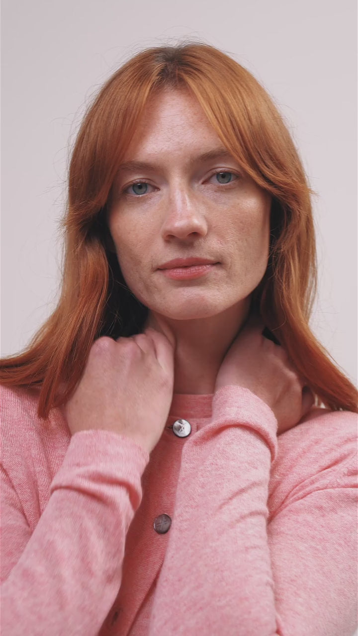Der Cou Cou Crew Cardigan ist ein moderner, leicht verkürzter Cardigan, der aus leichtem, wollgesponnenem Kaschmirgarn gestrickt ist. Ein zeitloser Klassiker mit klaren Linien, taillierter Silhouette und unseren charakteristischen, geätzten Begg x Co-Perlmuttknöpfen.