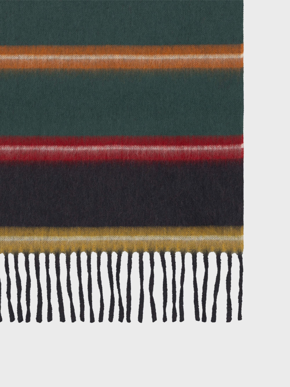 Avec ses rayures d'inspiration universitaire et son contraste de couleurs saisissant, l'écharpe Hew revisite un modèle à rayures classique avec modernité, grâce à des couleurs vives et éclatantes et une finition semi-réversible pour un style polyvalent. Chaque écharpe Arran Hew est soumise à 35 processus de fabrication minutieux dans notre usine écossaise, utilisant le cachemire de première qualité le plus fin. Sa texture ondulée emblématique est obtenue grâce à une technique de brossage traditionnelle avec des cardères italiennes récoltées à la main, cultivées selon nos spécifications rigoureuses. Tissé avec une structure dense pour une chaleur optimale, l'écharpe Hew témoigne de l'engagement de Begg x Co envers le savoir-faire artisanal.