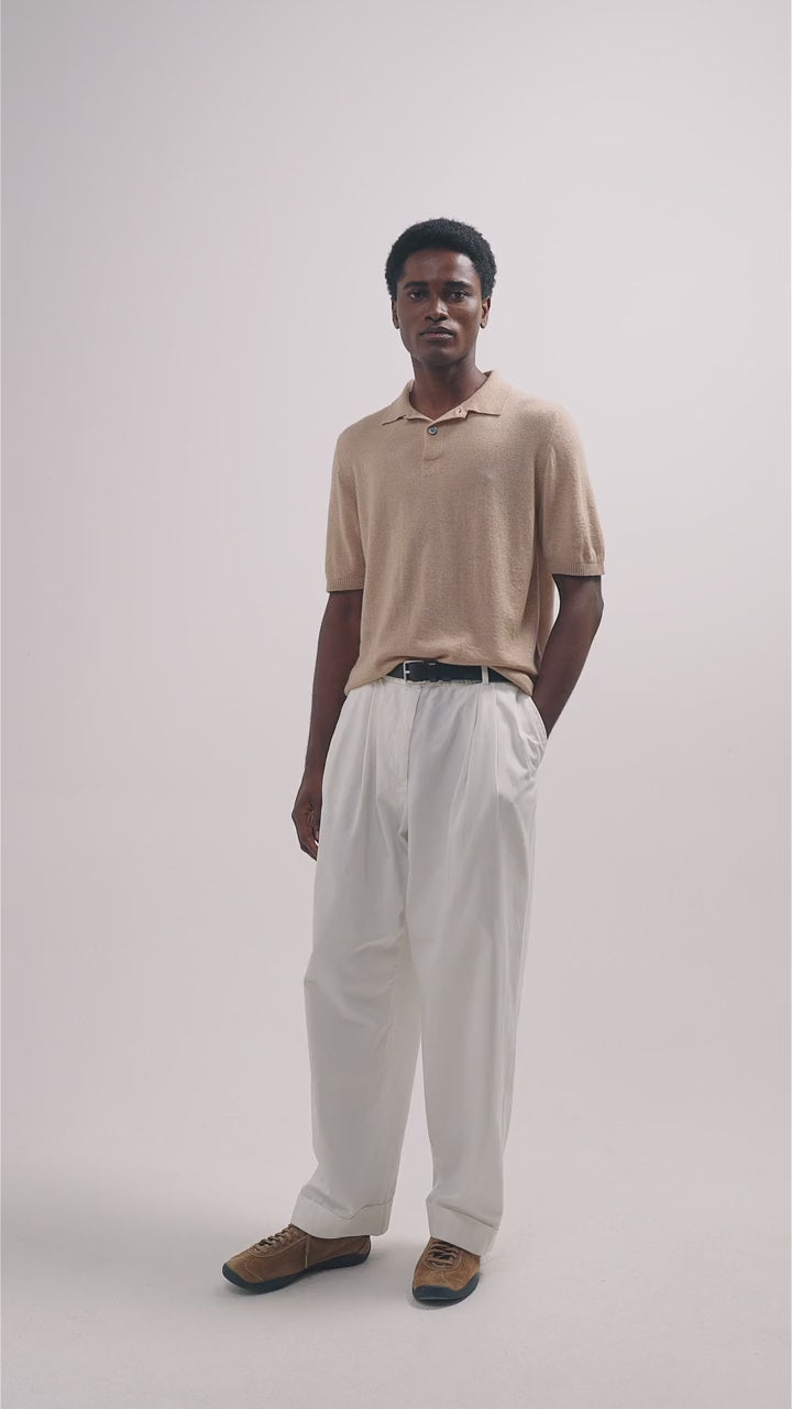 The Summer short sleeve shirt is knitted in superfine, lightweight woollen spun cashmere yarn. Semi-fitted with short sleeves, this style takes inspiration from the timeless appeal of authentic Scottish rugby shirts, creating an elevated sporty vibe.