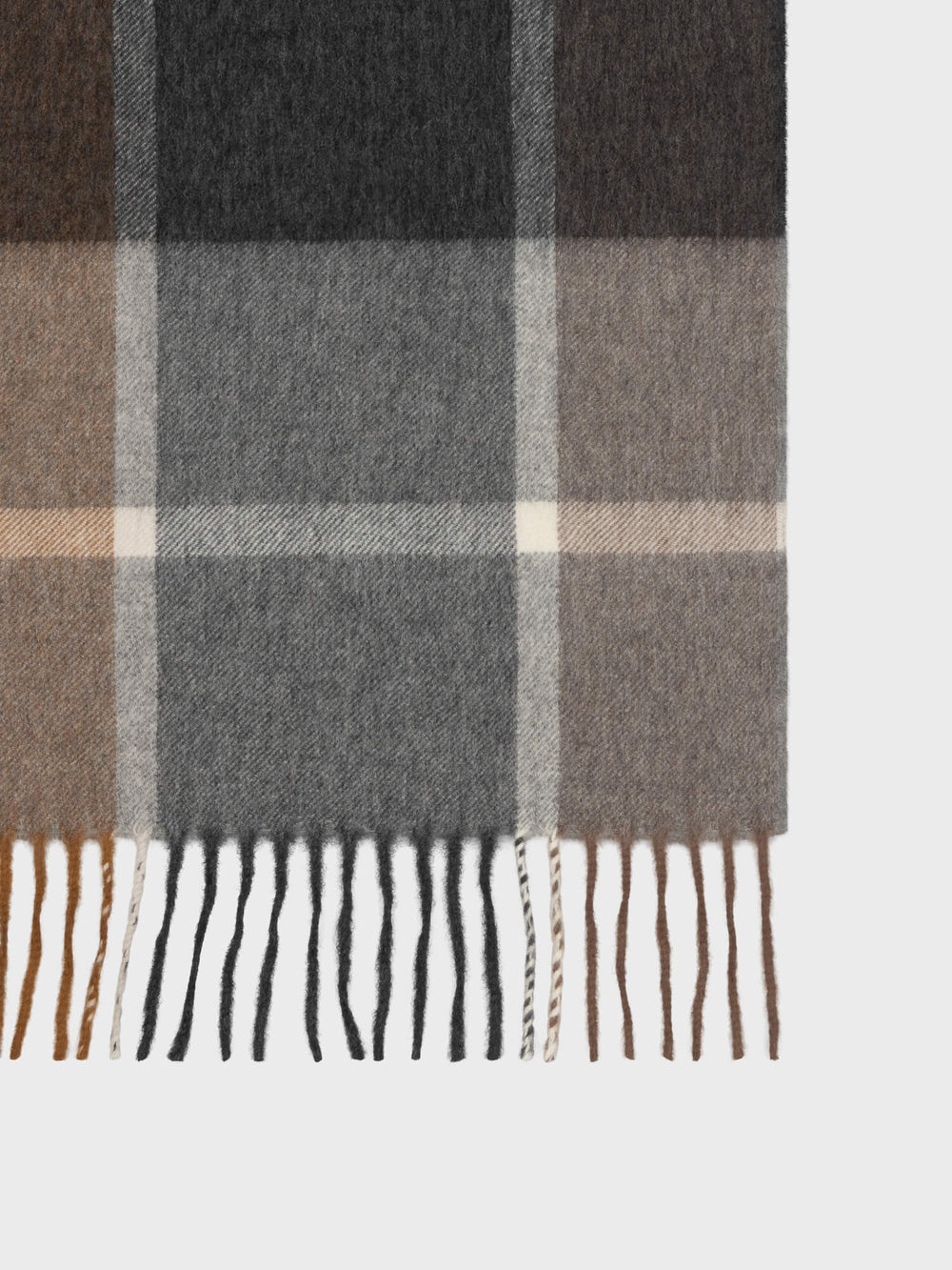 The Edgar scarf reimagines classic menswear with a bold color-block design—a contemporary take on a classic check pattern. Effortlessly versatile and eternally stylish, it is crafted for those who appreciate refined luxury. Each Arran Edgar undergoes 35 meticulous processes in our Scottish mill, using the finest A-grade cashmere. Its signature ripple texture is achieved through a traditional brushing technique with hand-harvested Italian teasels, grown to our exact specifications. Woven with a dense structure for superior warmth, the Edgar is a testament to Begg x Co’s commitment to craftsmanship and an essential addition to any wardrobe.