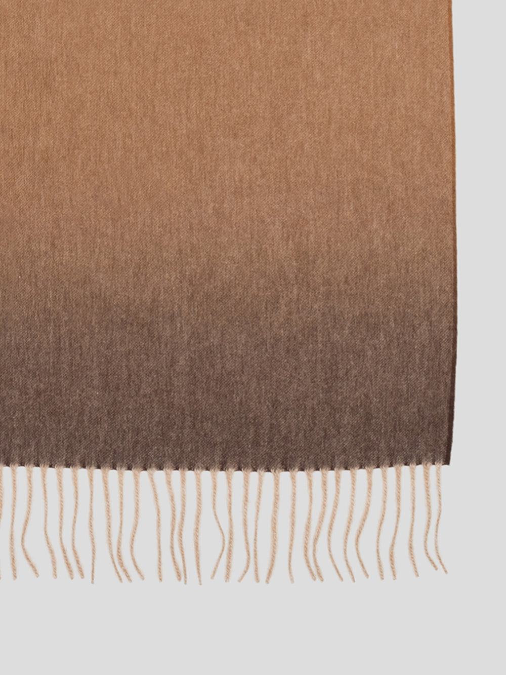 Developed at our mill in Ayr in the early 2000s, each Nuance Ombre scarf, stole, and throw is designed with its own bespoke yarn of blended hand-dyed cashmere, the result of patented spinning techniques. Approximately 7 km of Nuance Ombre yarn is woven into one of our Nuance Ombre throws to create a subtle blend of colour from fringe to fringe.
